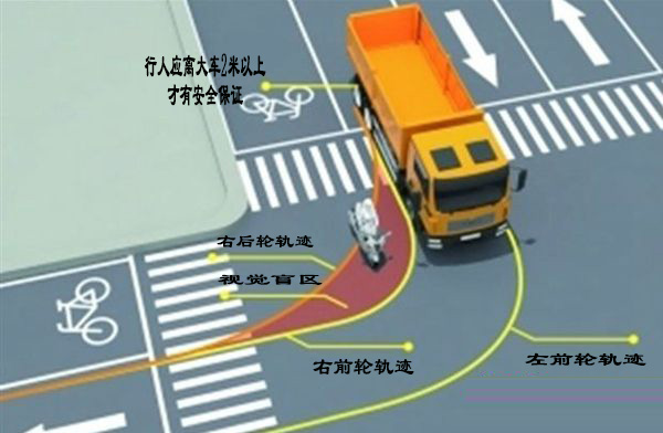 拐彎時,前內輪轉彎半徑與后內輪轉彎半徑之差,形成盲區?,F在我們開發出像大貨車這種大型車的360度全景。雖然大貨車有了這套行車輔助系統,還是要提醒:行人和車輛應該遠離2米以上的距離。
