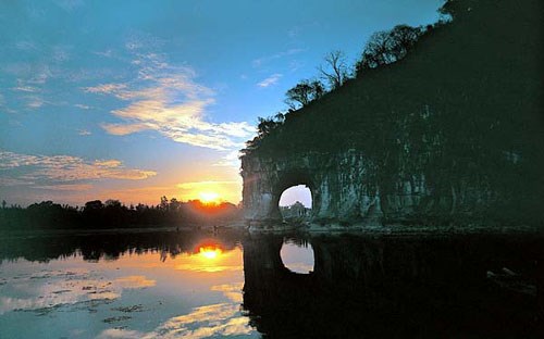 從深圳北乘車至桂林,我們第一站來到訾洲公園。如果僅僅看訾洲公園的名字,或許都會覺得只是一個小小的公園,但是當(dāng)大家得知這個公園之中可以最佳角度欣賞全國聞名的象鼻山,都早就按捺不住興奮地心情,一個個都飛奔至最佳觀賞點(diǎn),似乎都忘記了身后的講解員。象鼻山顧名思義形如大象,最為特別的是象鼻山的鼻子,真的很像是一只大象站在河中間喝水。象鼻山原名漓山,位于廣西區(qū)桂林市內(nèi)桃花江與漓江匯流處,山因酷似一只站在江邊伸鼻豪飲漓江甘泉的巨象而得名,被人們稱為桂林山水的象征。