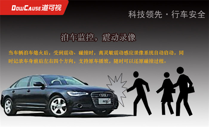 車輛無故被劃,找誰負責,車輛被撞,找不到肇事者什么辦,泊車后的安全問題誰來解決?道可視360度全景行車輔助系統還擁有碰撞感應錄像功能,當車輛收到震動碰撞時,自動啟動錄像功能,前后左右四路攝像頭同時同步錄像。清楚的記錄下碰撞過程,同時能夠自動鎖定當前震動引起的錄像文件。不用擔心錄像文件被覆蓋,被刪除,隨時可以還原碰撞過程。