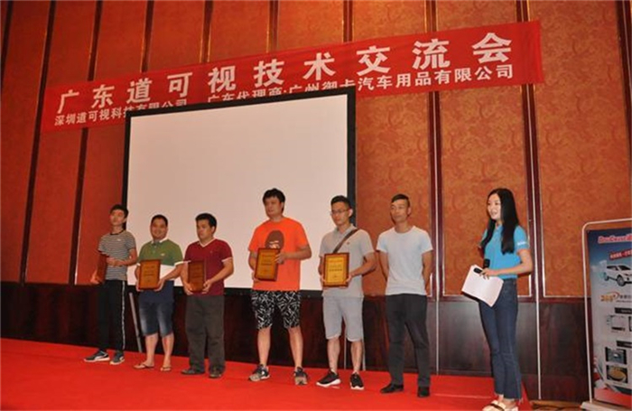 會員店授權環節。一共有33家會員店上臺領取授權牌,主持人現場邀請會員店代表分享經營之道。廣州市、陽江市、東莞市會員店都積極表達自己的看法。不少店主表示,產品性能的穩定是基本的,道可視的360全景安裝之后車主的反饋都比較好,銷售起來也很有信心,從目前來看幾乎是沒有售后的,過硬的產品根本不需要強推,直言相信品牌的力量。