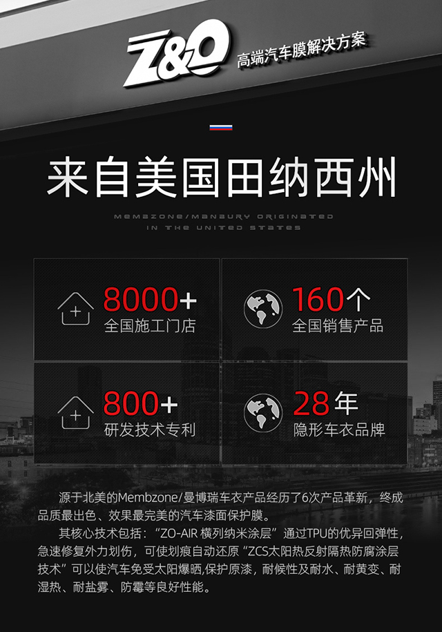 Z&O品牌隱形車衣的“完美”理念,其底氣來自于與美國Membzone公司的淵源與深度合作。